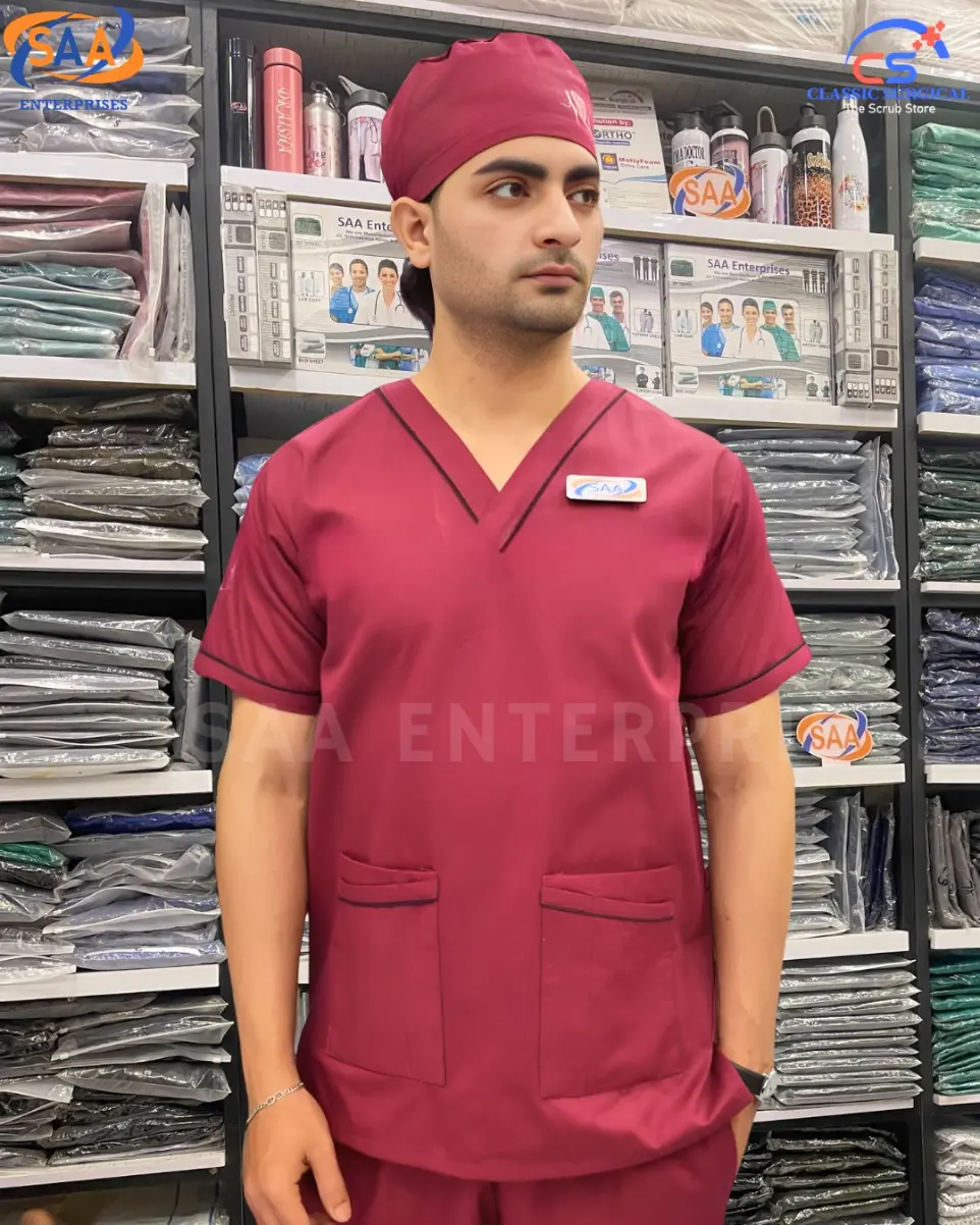 The SAA Galaxy scrub in rich maroon with sleek trim offers a touch of sophistication without compromising on the comfort and practicality you need throughout your demanding shifts. It’s designed to make you feel as good as you do.