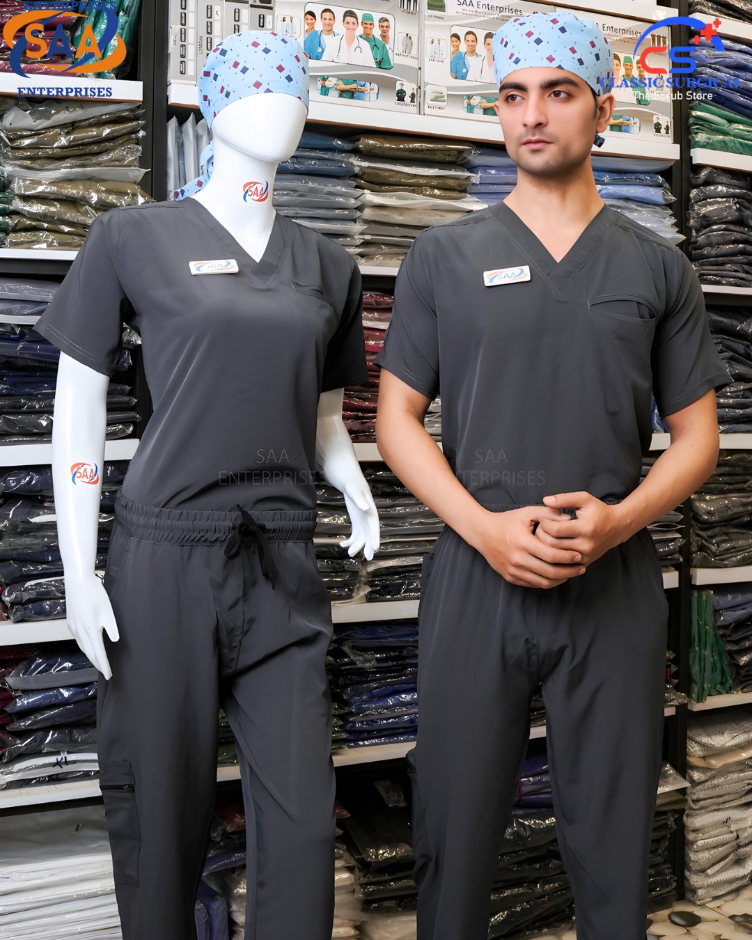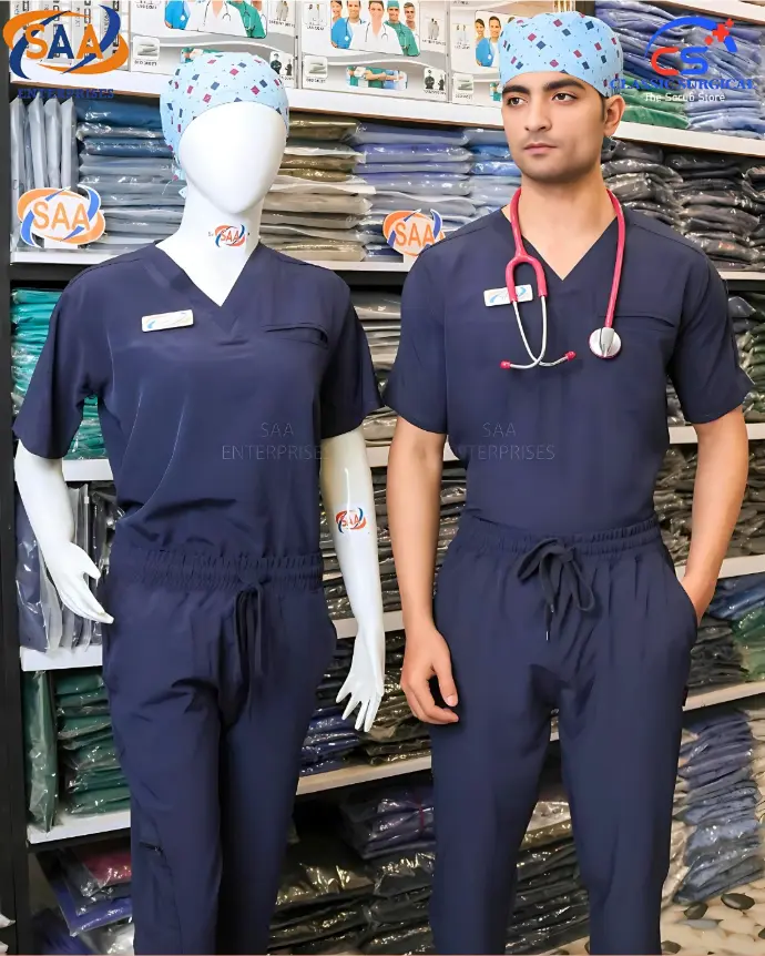 Introducing the Softy Scrub suit, the ultimate choice for healthcare professionals in Pakistan. This medical uniform is meticulously crafted from our signature 'Softy' fabric, offering a perfect blend of comfort and durability for long hospital duties. The doctor's scrub uniform features a modern V-neck top with a relaxed fit, and trousers with a comfortable elastic waistband and adjustable drawstring, providing ease of movement. Designed to be wrinkle-resistant and easy to wash, this scrub set ensures a smart and professional look throughout your busy day. Whether you are a doctor, nurse, or medical staff member, this high-quality hospital dress is a reliable and stylish addition to your professional wardrobe.